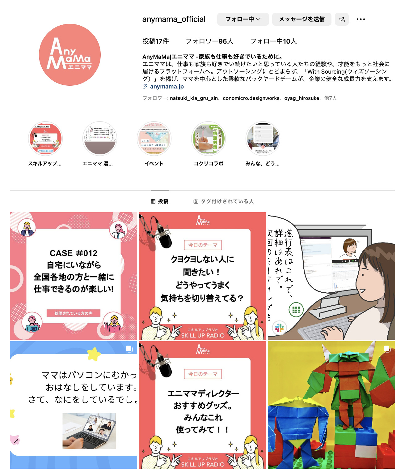 エニママインスタのアカウントはコチラ https://www.instagram.com/anymama_official/