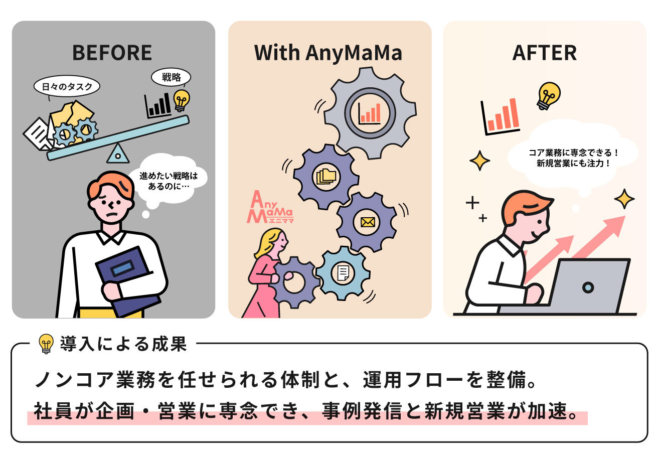 エニママにノンコア業務の代行を依頼し、業務の観測化とオペレーション設計をサポート