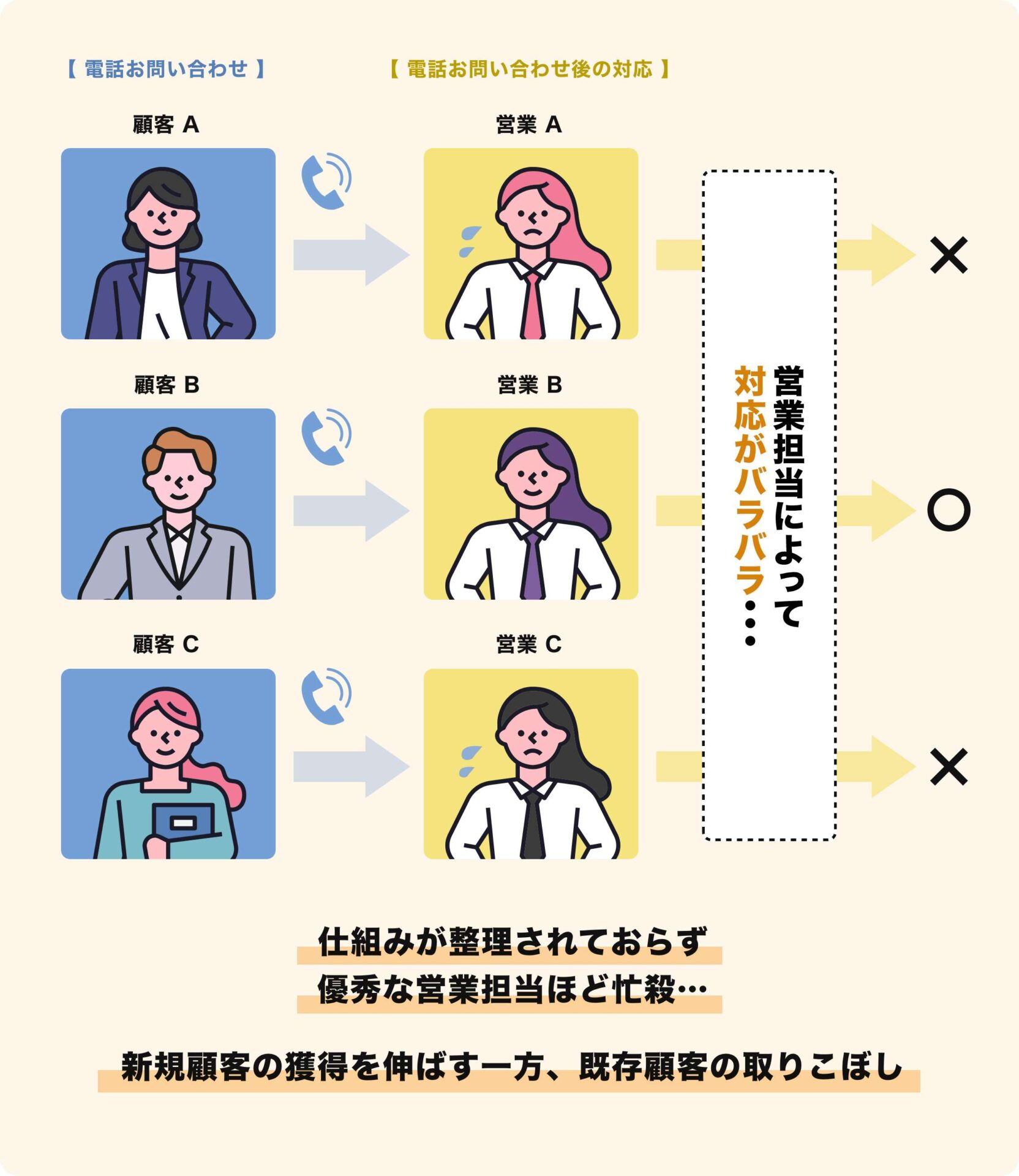 アプローチが担当者によってバラバラ、社内に決まった仕組みなく取りこぼし