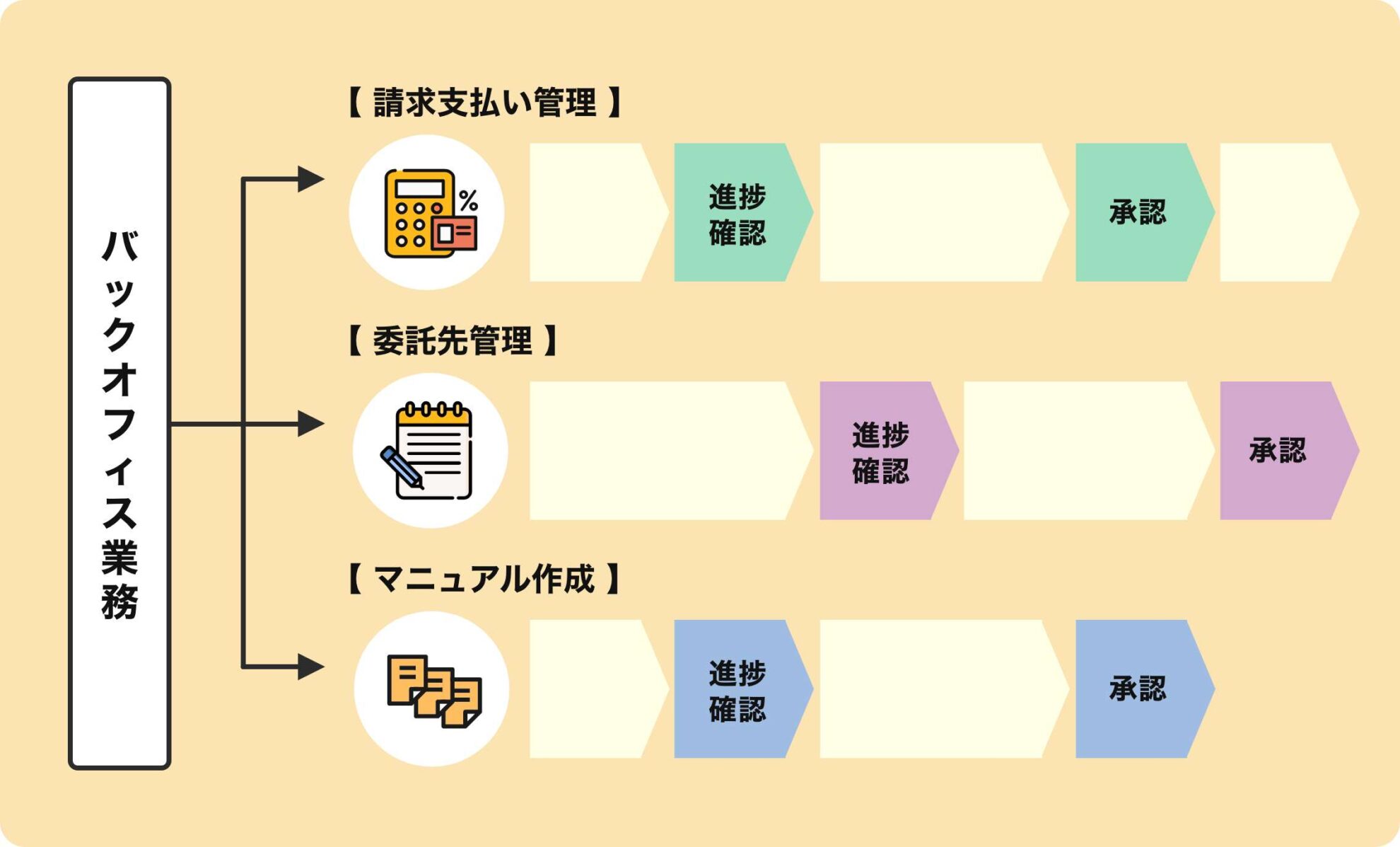 これらのバックフィス業務を全て一人で担当していた社員は退職してしまい、後任に引き継ぐための業務フローもなく、社内は混沌とした状態に陥っていたのです。