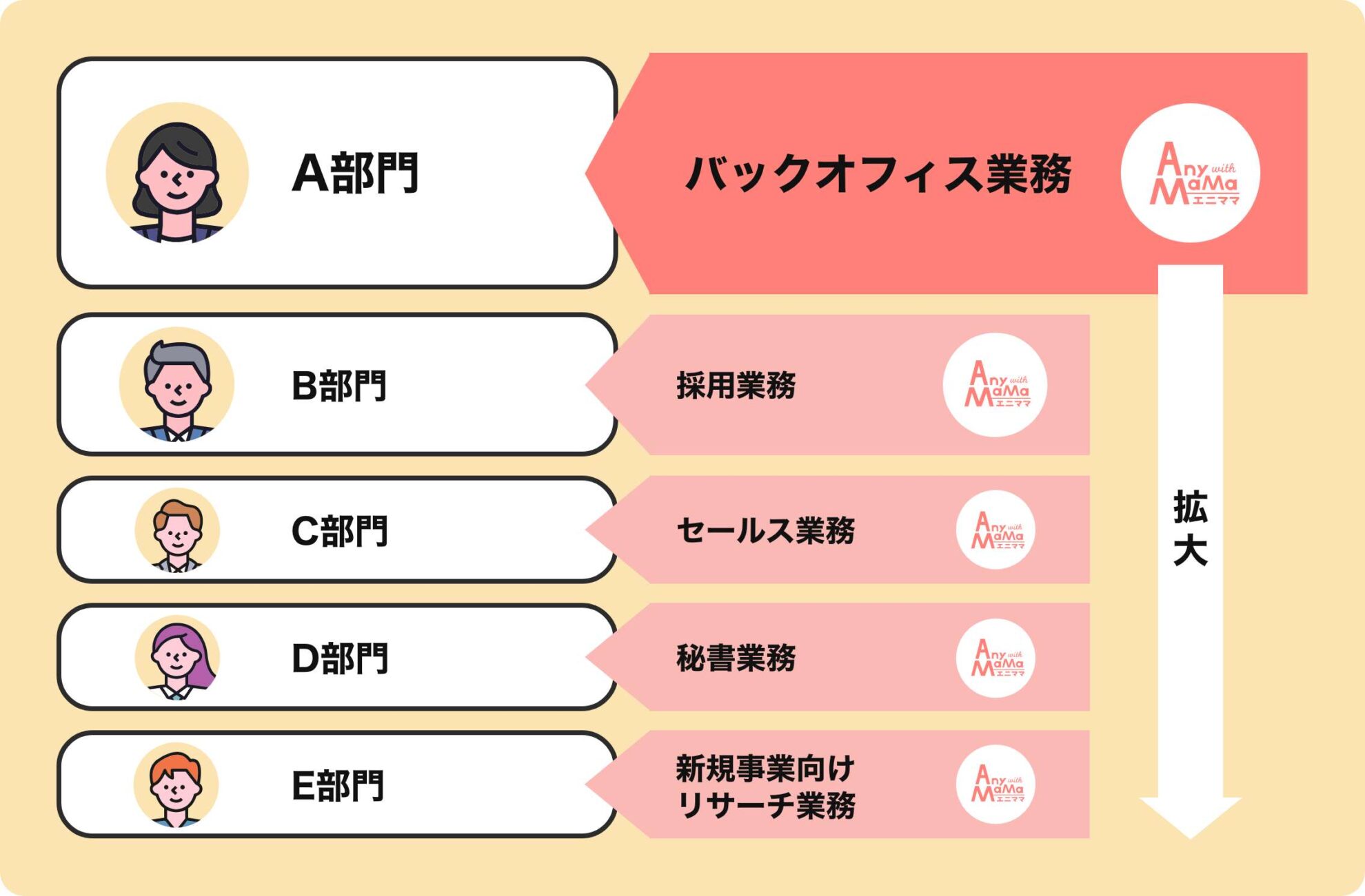 そこで、エニママにバックオフィスのオペレーション整備と実務担当ママのアサインを依頼。