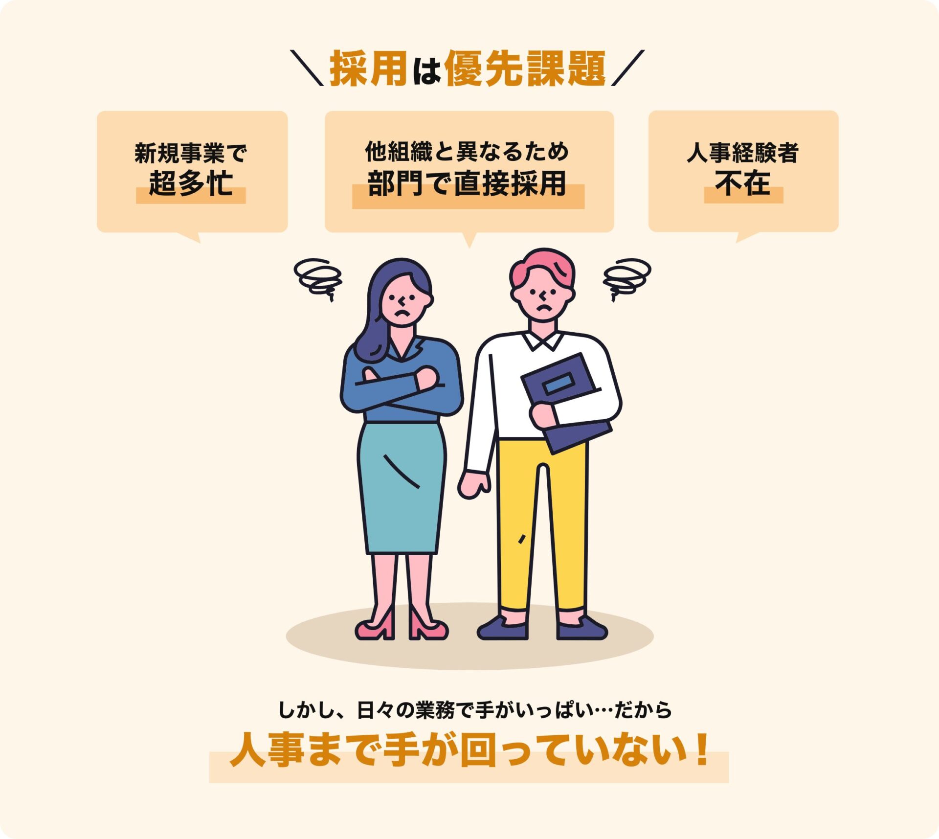 採用は優先課題…でも、人事経験者がいない、やる暇もない