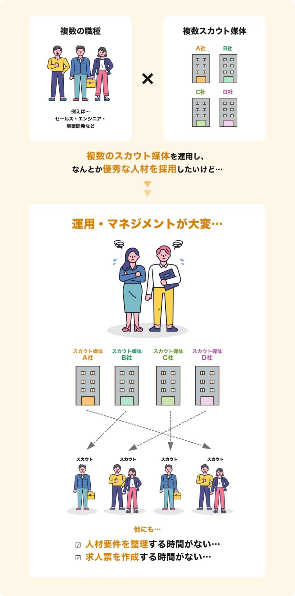 複数の職種×複数スカウト媒体の運営マネジネントも大変に