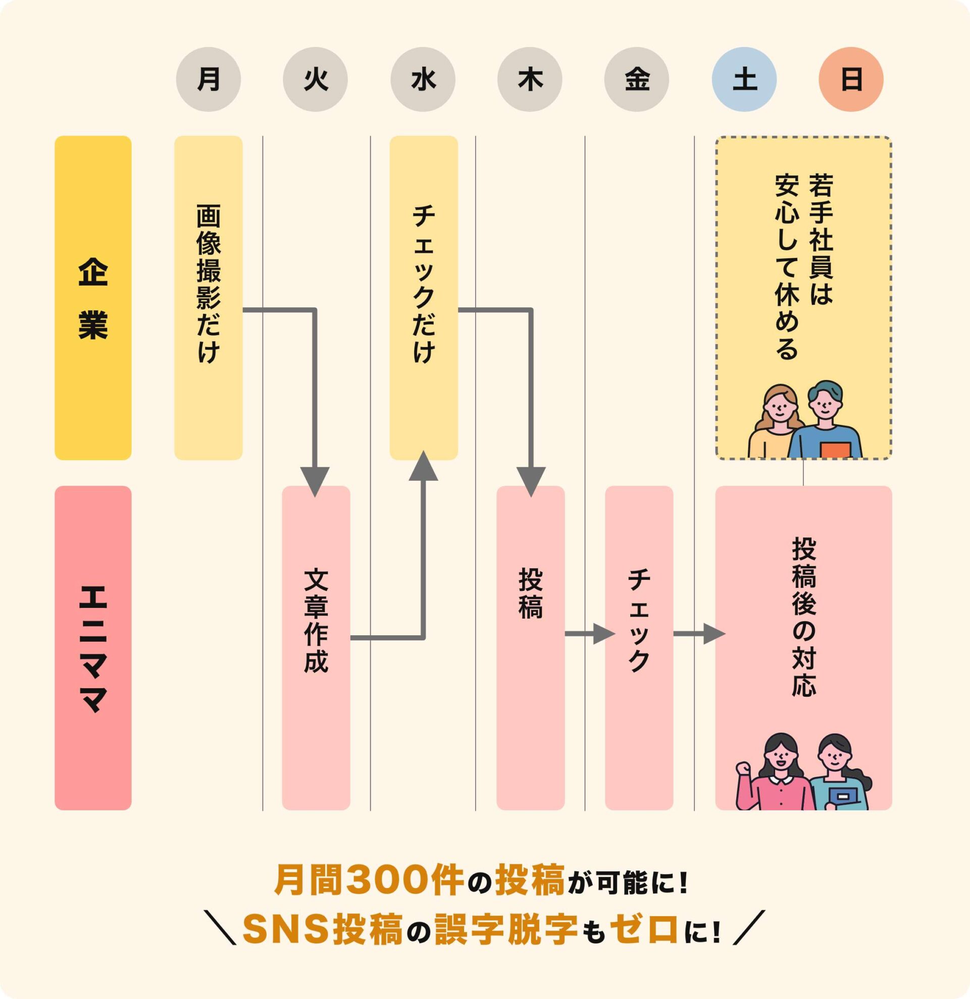 エニママ 導入で量と品質を落とさず月300件!SNS投稿の誤字脱字もゼロに!